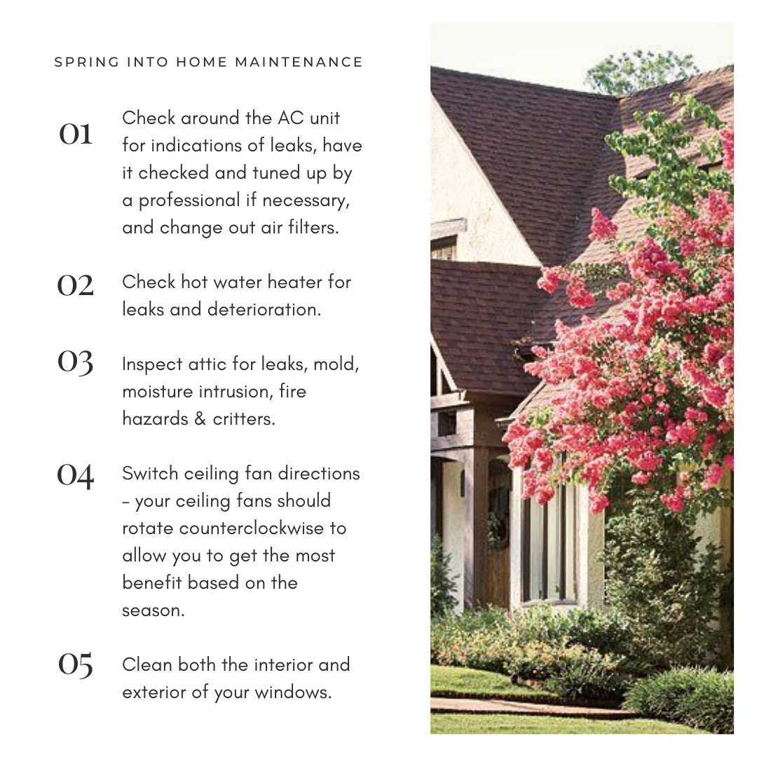 Spring Home Maintenance by Ashley Childs | Mar 10, 2023 | lifestyle, Seasonal | 1 comment 1 Comment John Barnes on March 10, 2023 at 3:38 pm Excellent advice! Reply Submit a Comment Cancel replyYour email address will not be published. Required fields are marked *Comment * Name * Email * Website Save my name, email, and website in this browser for the next time I comment. Δ
