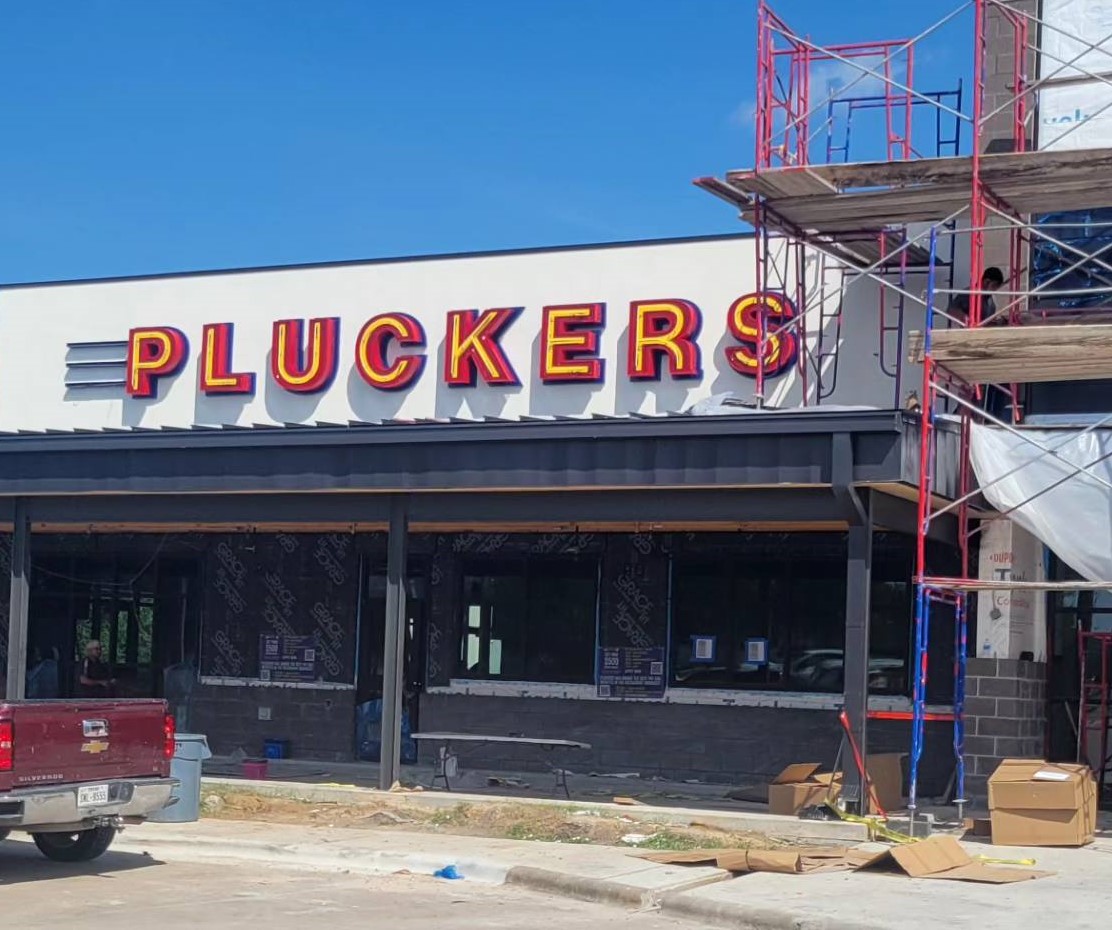Pluckers Wing Bar – Huge outdoor area including a Pickleball Court, uncovered synthetic turf area with corn hole, and an awesome covered patio/bar area with multiple tvs! Great addition for College Station and will be an awesome game day hangout! Located on University Dr East.
